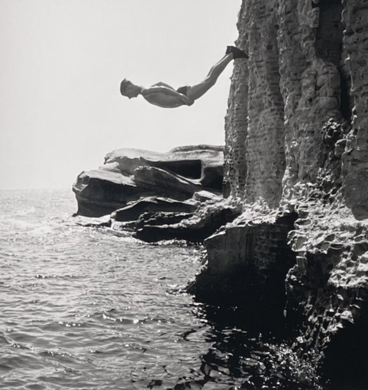 A word until recently unknown to me is ‘tombstoning’ — the act of leaping off a high rock into the sea. It’s called this because you are supposed to jump with arms and legs straight down, thus resembling a tombstone, though other postures are available. Another implication of the word is that you could end up dead.