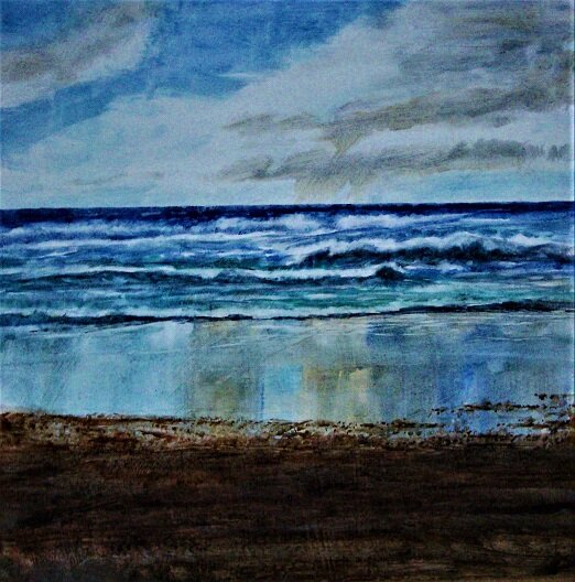 Here is my second sea picture. The rain clouds have cleared away, the sky has brightened and the waves are rolling happily onto the smooth sand.