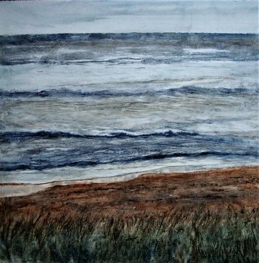 Recently I painted three sea pictures. I had been for an early walk along the shore, through the dunes to the expanse of Ravensheugh Sands, eastwards where the sun was an ochre smudge in an unsettled sky. I took some photographs as the light constantly changed and the sea with it.