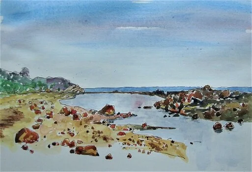 Low Tide 1. This and the following four paintings are watercolours on a gesso ground