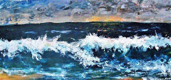 The sea embodies the conundrum of evolutionary time. The billions of Earth years in which continents have shifted and the sea has been rising and falling, its tides ebbing and flowing to the rhythm of the sun and moon….and yet, within that eternity, the unceasing present, that riddle where we try to catch the moment only to find it has gone. When exactly does the wave break, when does its present turn to past? I was reflecting on this one day while sitting on the beach.